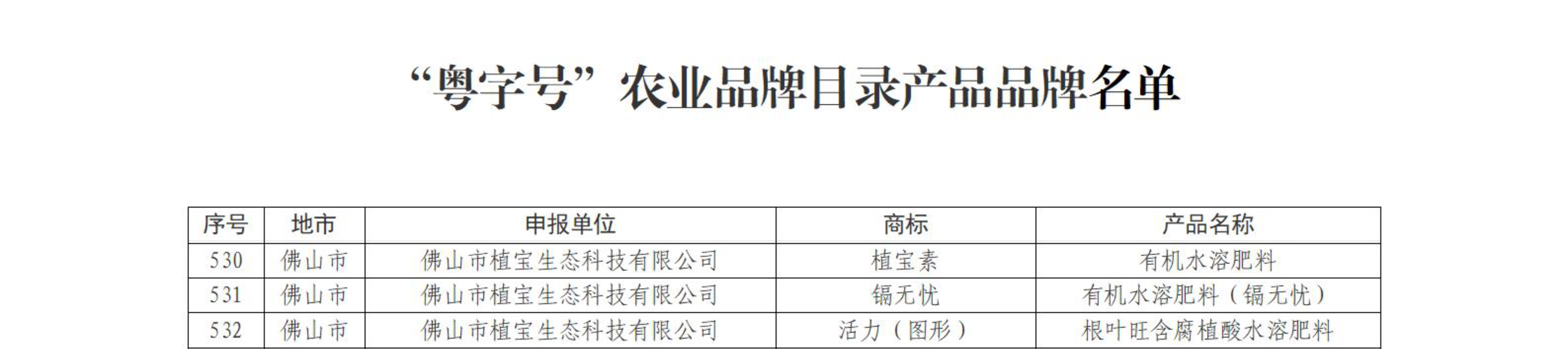 熱烈祝賀佛山植寶3種產(chǎn)品榮登“粵字號(hào)”農(nóng)業(yè)品牌目錄